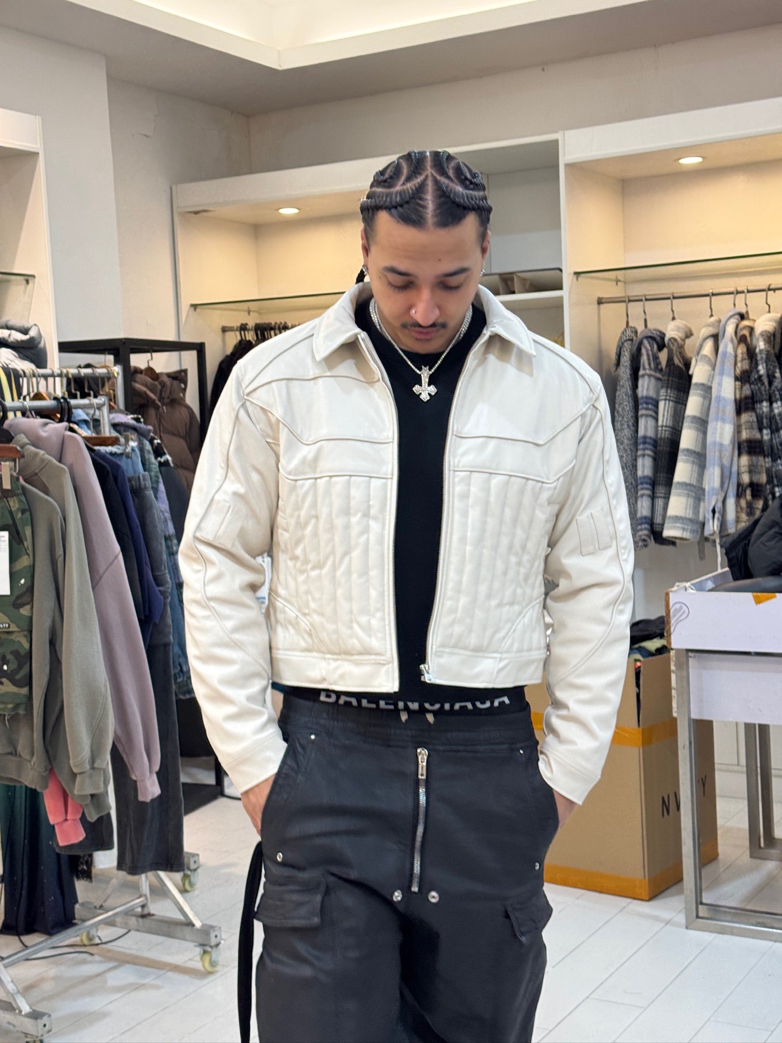 CROPPED RIDER JACKET IN UPCYCLED VEGAN LEATHER