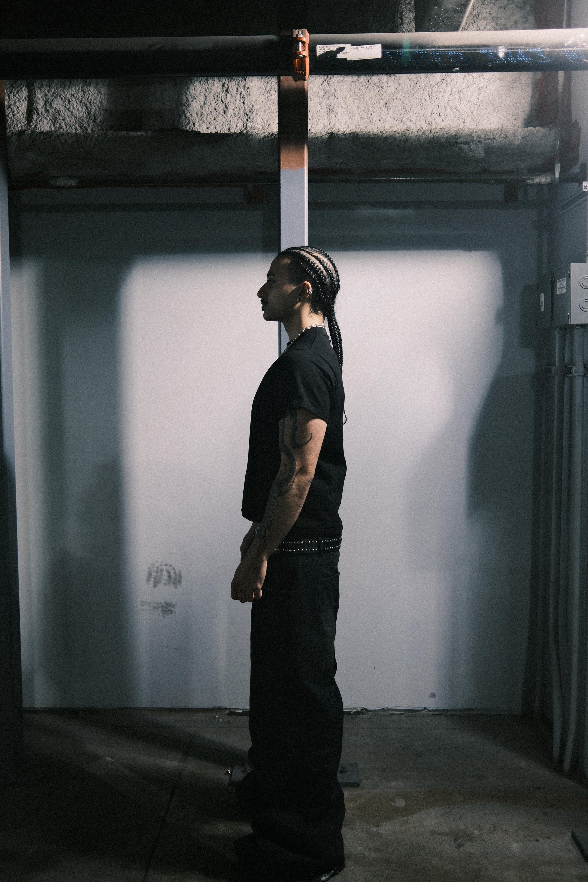 THE SLEEVES ARE SHARPLY ANGLED AND SLIGHTLY POINTED, REFERENCING HAND-ALTERED T-SHIRTS WORN BY ICONIC ROCKSTAR FRONTMEN.