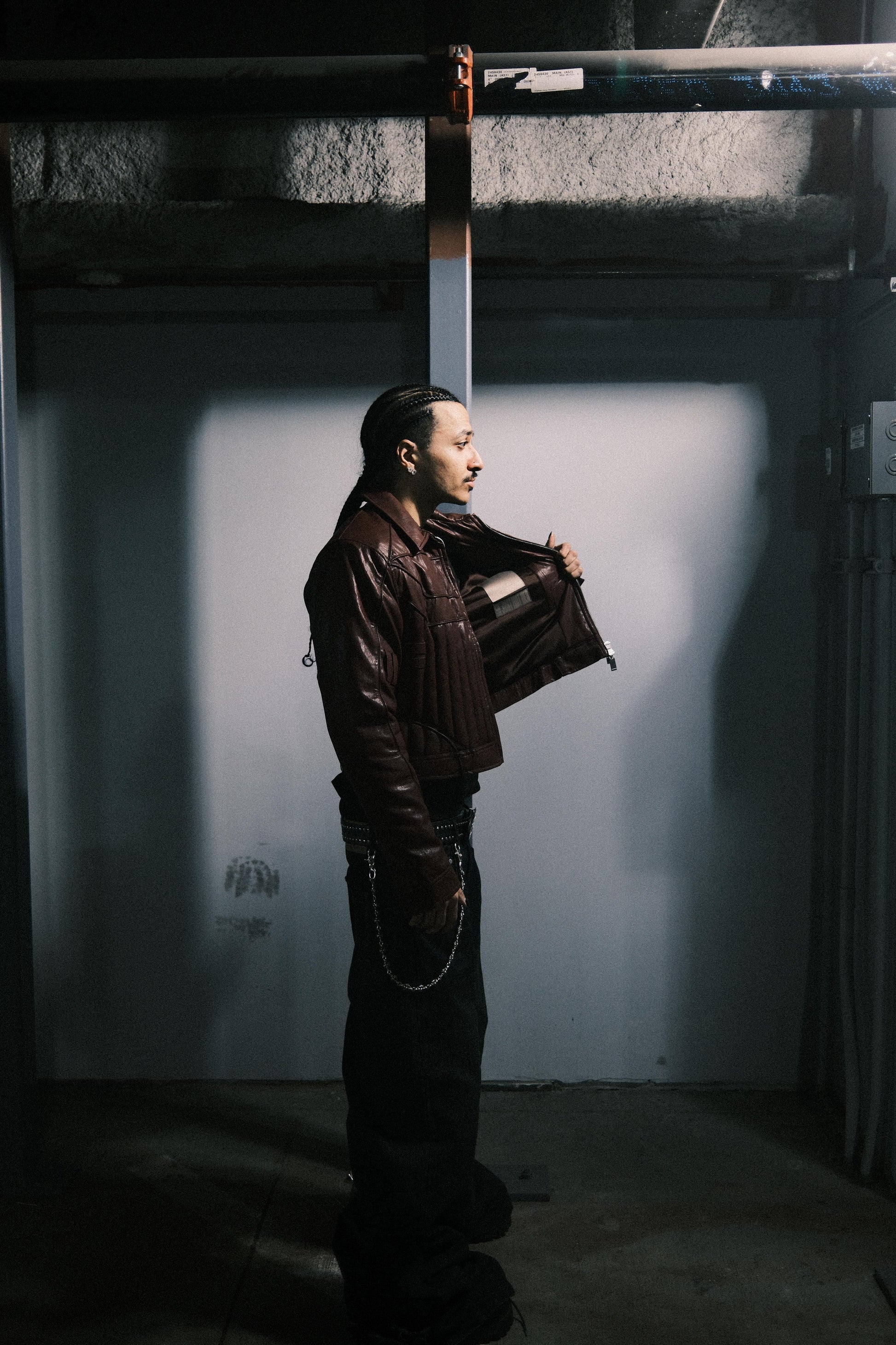 CROPPED RIDER JACKET IN UPCYCLED VEGAN LEATHER [LIPSTAIN]